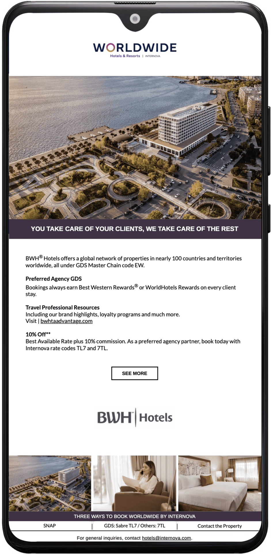 The E-Newsletter allows partners to feature their property and communicate special offers and promotions for the Internova Hotels & Resorts program.
